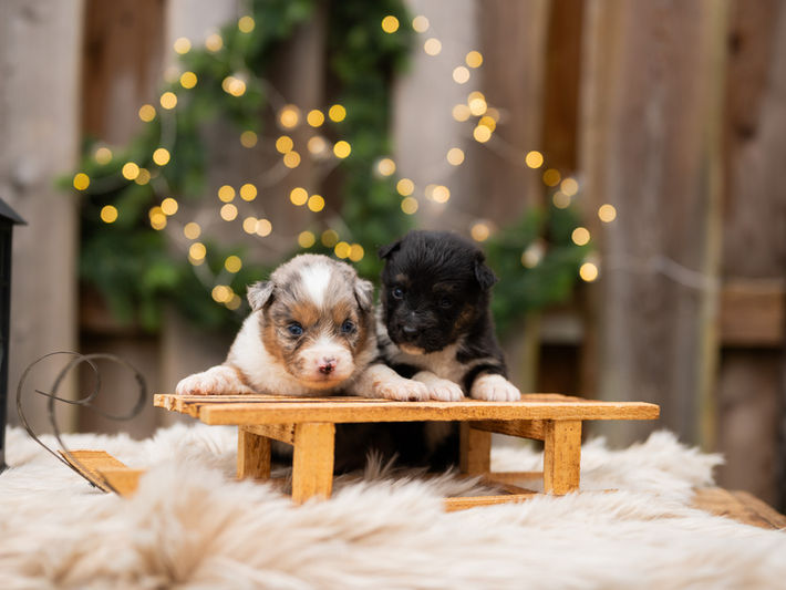 es haben wieder wundervolle sowie typvolle Toy/Miniature Australian Shepherd Welpen aus unserer Zucht das Licht der Welt erblickt. Sie tragen die Farbe Red Bi. Es sind aktuell Hündinnen verfügbar. Da der Papa blauen Augen hat, wird dies auch einige Welpen schmücken.